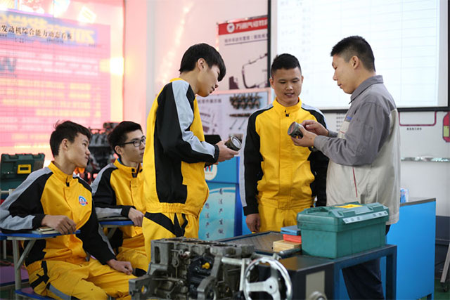 2014年唐老师走上讲坛成为一名教师,将自己在十几年所积累的维修经验毫无保留地传授给学生,时刻按4S维修店的标准要求学生,树立学生正确的“职业人”意识。